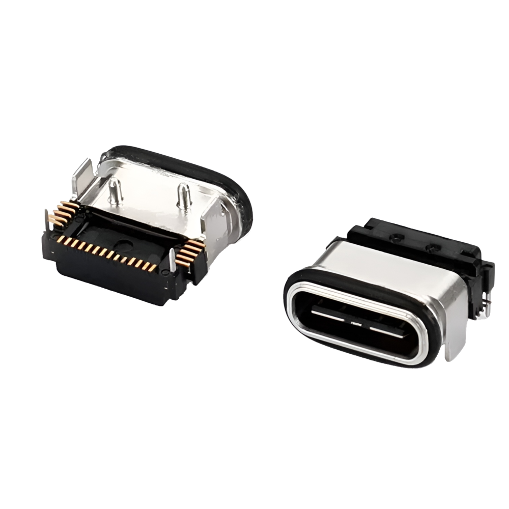 超短體TYPE C 24P防水母座 沉板1.8MM 雙排SMT L=7.95MM 防水IPX8 2M/1H